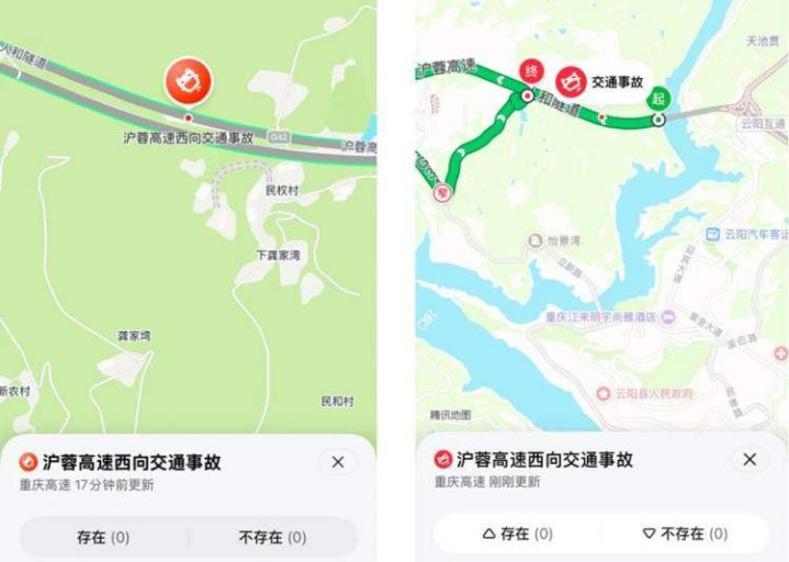 同期,重庆高速区域新增了施工慢行车辆预警关系才能,腾讯舆图将基于施职责业车辆实时轨迹,在车辆接近关系功课区域时进行安全教唆,进一步裁汰突发风险,进步通行安全。