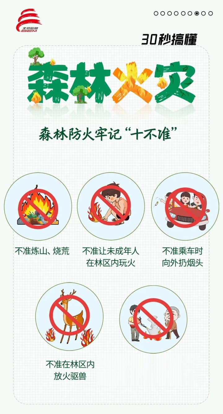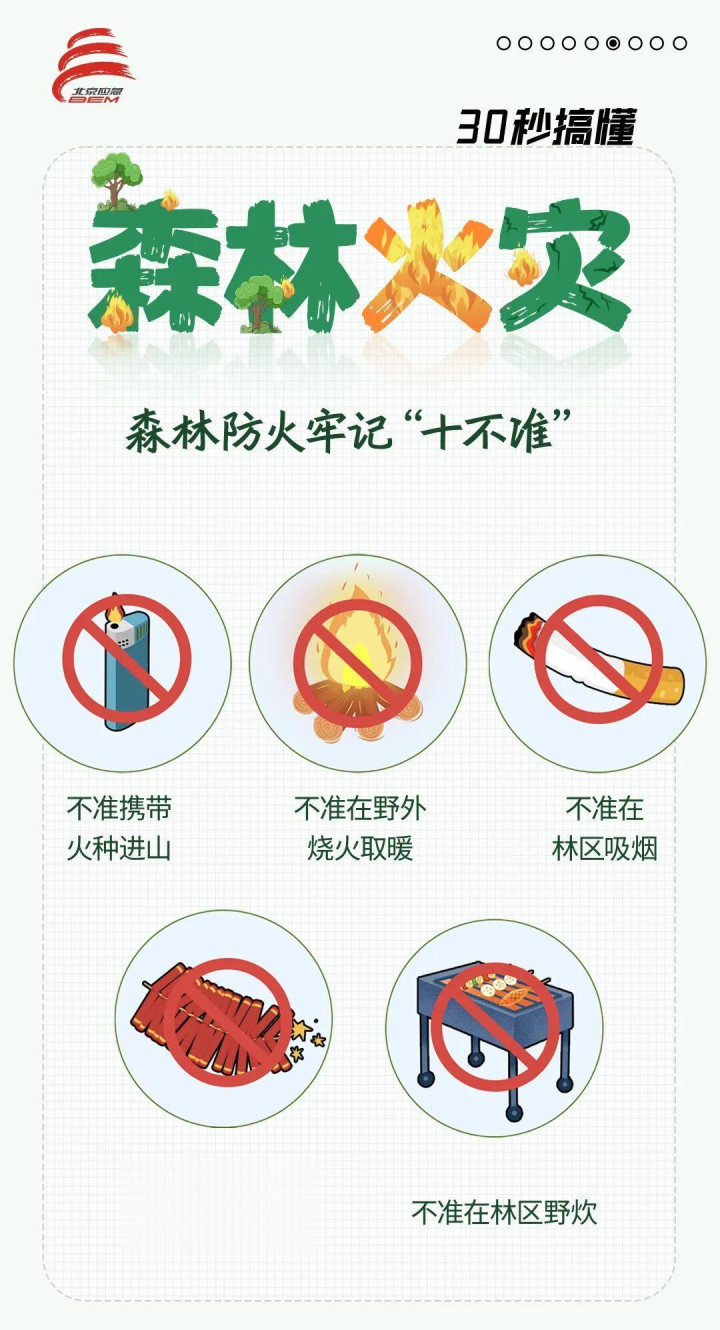 ●跟着气温回升和清朗节的到来,丛林防火区农事作为、风俗祭祀、施工分娩、踏青旅游等户外作为将大幅加多,天干物燥、火险高危,请严格顺从丛林防火干系划定,不要佩戴火种或易燃易爆等危境物品干预丛林防火区。