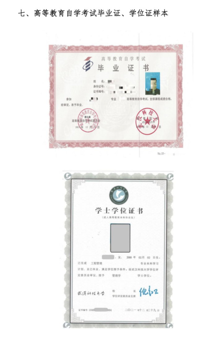 毕业文凭:凡按照报考专科考验缠绵的限定,取得相应课程及格收成且达到限定学分要求,毕业门径和本质性门径探员及格,想想品德经飘零安妥要求者,经本东谈主央求且审核通过,由湖北省高级锤真金不怕火自学考验委员会颁发报考专科毕业文凭,主考学校副署,国度承认学历。