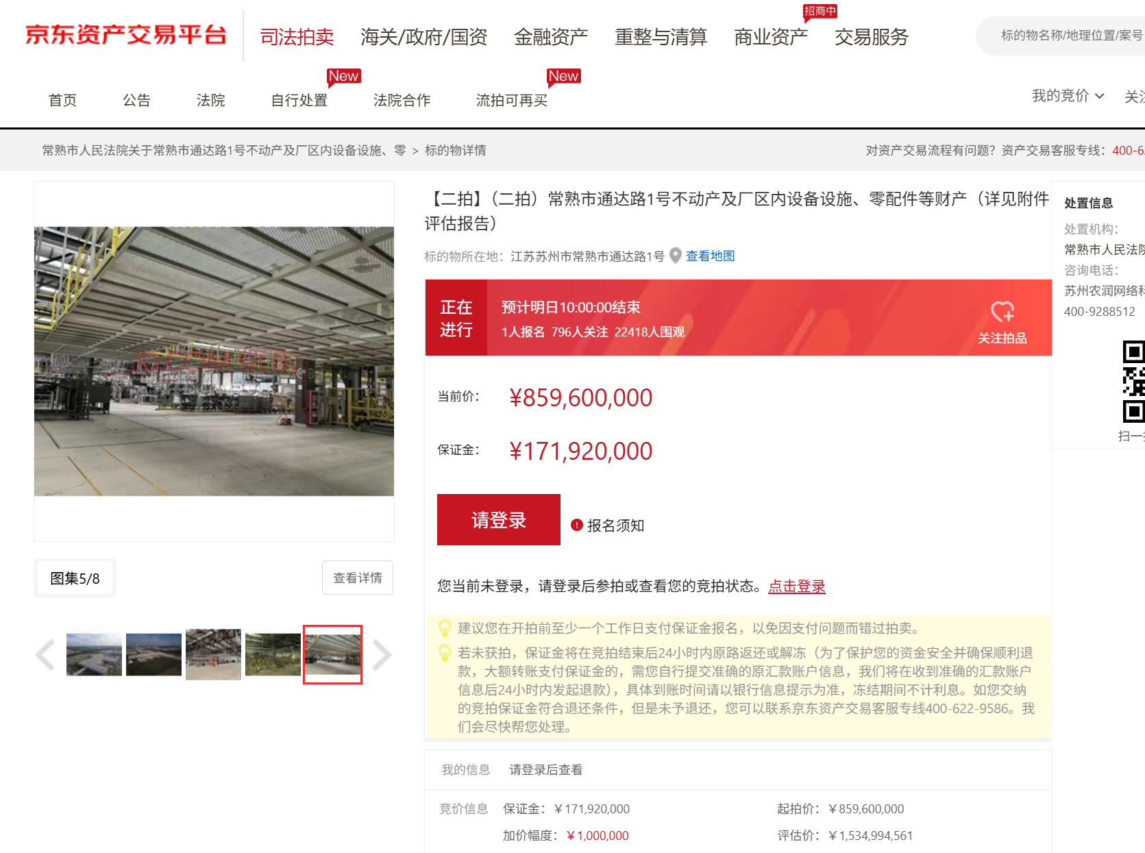 1月16日上昼10时,京东公法拍卖平台上,不端淑汽车位于江苏常熟的中枢钞票法拍再次以流拍告终。