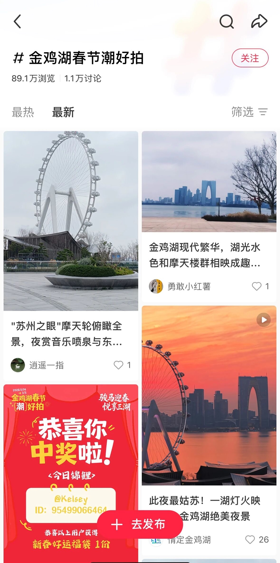 “金鸡湖春节潮好拍”小红书打卡活动。