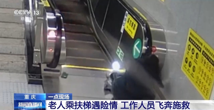 近日(9日),在重庆地铁9号线五里店站内,一位七旬老东谈主搭乘扶梯时肉体失衡,眼看就要摔下扶梯,一位站务安全员发现后立即向前协作。