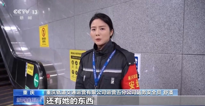 重庆轨谈交通运营有限公司运营五分公司站务安全员舒潘:那时我是半蹲的,一直用左脚的力抵住老东谈主和她的东西。因为那时东西太重了我抬不起来,凤凰彩票Welcome就把她安全地放在阿谁台阶上。