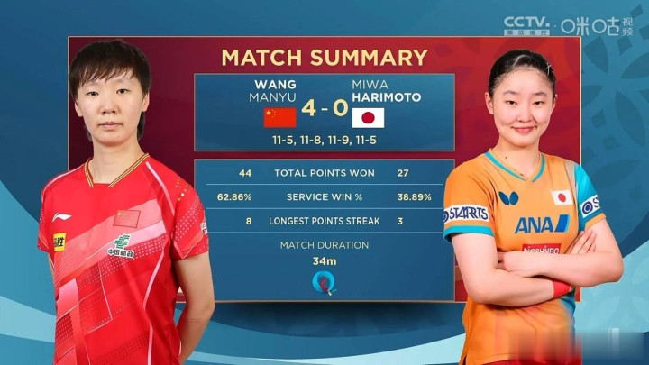 再说回王曼昱,回回好意思和王人败在她部下,这不是无意,从第一次交手到当今,曼昱对好意思和保握着全胜,其中还有11:0这种比分,胜仗把好意思和打哭过,这不是简短的克制,这是工夫体系的全面压制。